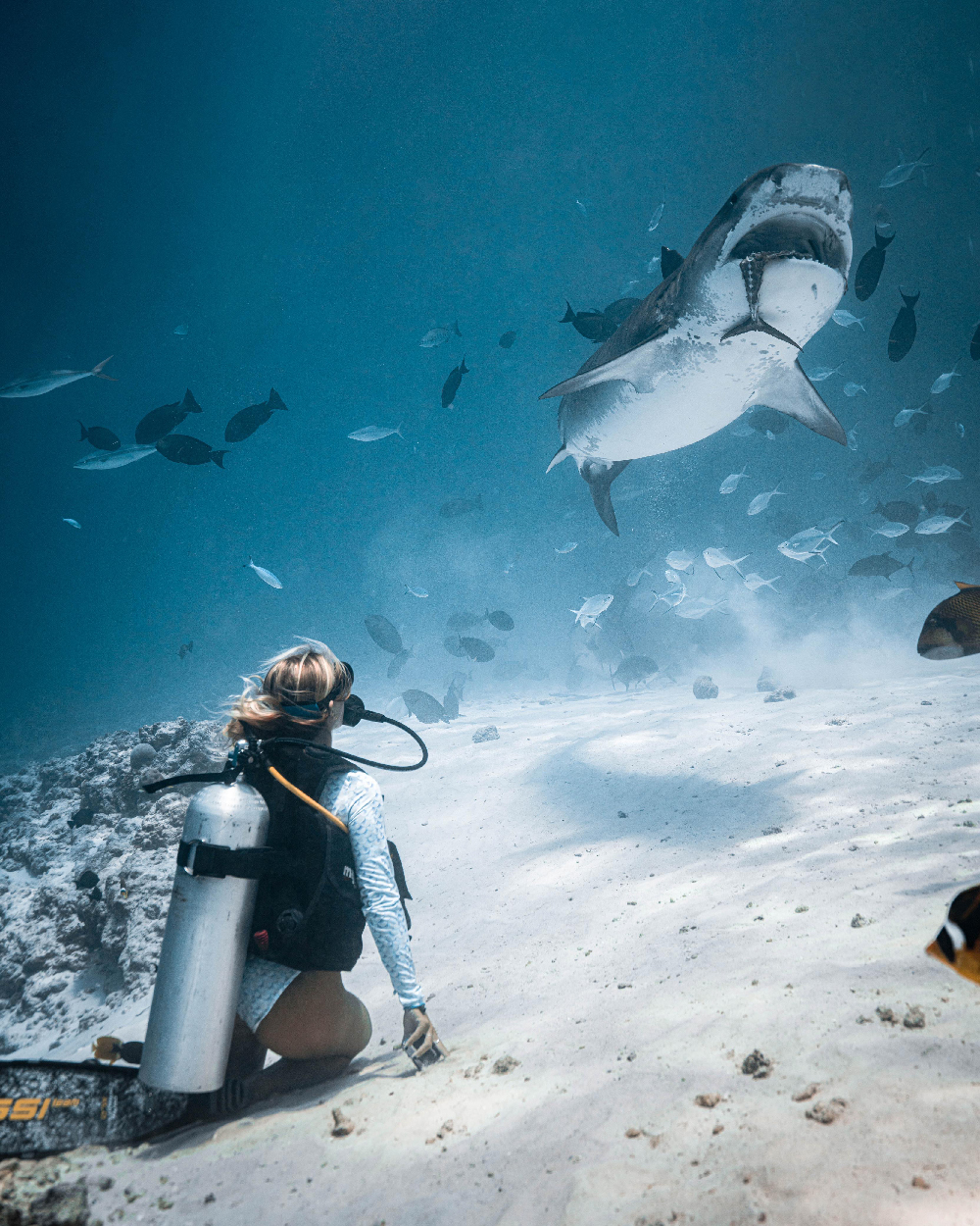 Prvních pět nocí strávíme na ostrově Fuvahmulah – ostrov, který objevují hlavně licencovaní potápěči z celého světa. Nachází se až na jižní polokouli a je známý svým nedotčeným podmořským světem. Právě tady žijí slavní tygří žraloci, liškouni a nespočet druhů korálů, které jinde na Maledivách už nenajdete. Fuvahmulah je také výjimečný svým vnitrozemím – místo písku tu najdete jezera, džungli a palmové háje, které dávají ostrovu zcela jiný charakter.