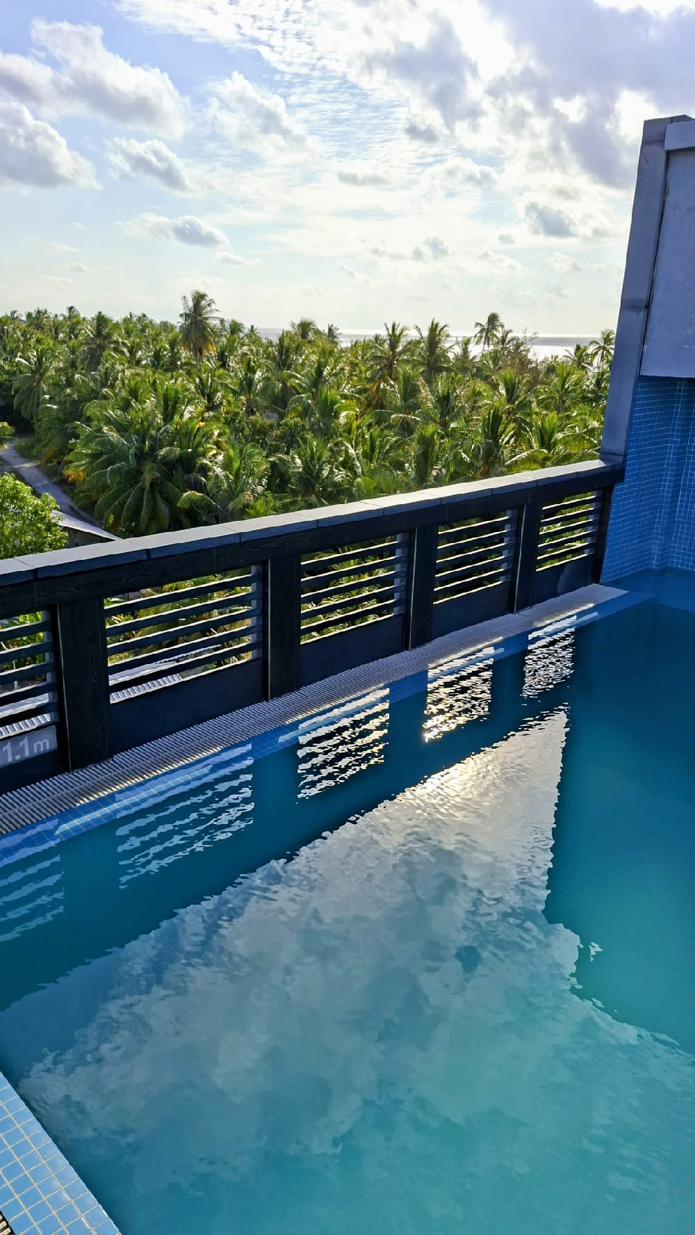 Hotel Maa Thundi leží na odlehlé, klidné straně Fuvahmulah hned vedle palmové aleje a pláže. Na střeše se nachází bazén s výhledem na celý ostrov. Má taky vlastní restauraci a kavárnu.
